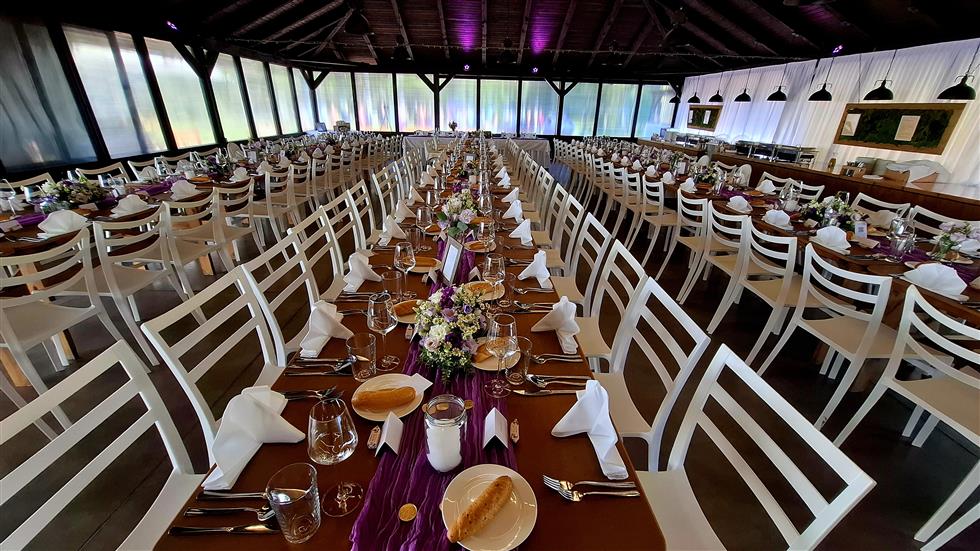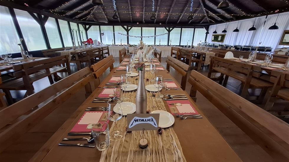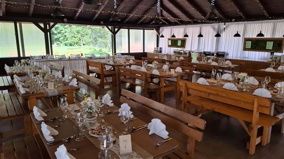 Ve stylové restauraci pro 50 osob s krbem a možností posezení na venkovní terase u bazénu nebo pod malou pergolou pro vás připravujeme snídaně formou švédských stolů a pro zbytek dne sestavíme speciální menu dle charakteru akce a vašeho přání. Pokrmy doplní široká nabídka nealkoholických i alkoholických nápojů, výborné čepované pivo a výběr kvalitních moravských i zahraničních vín. Pro větší počet osob je k dispozici venkovní krytá pergola pro až 120 sedících hostů, s využitím přilehlé terasy pro až celkem 300 hostů u venkovních stolů a bistro stolků.