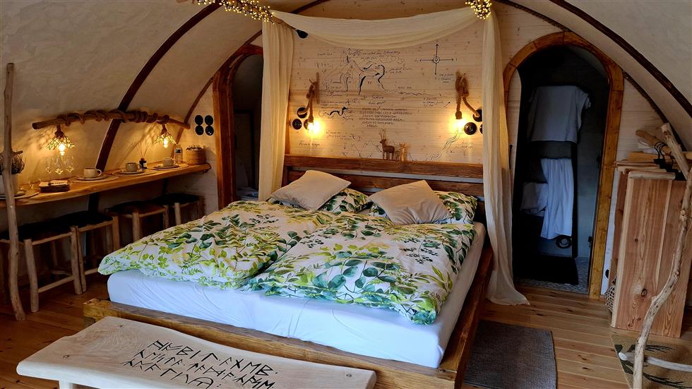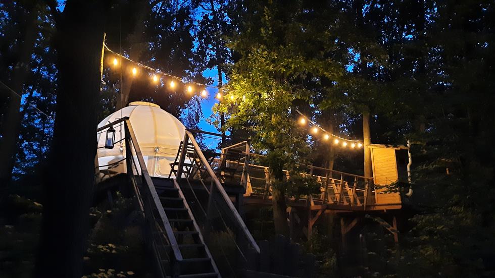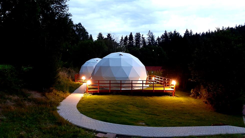 Od jara do podzimu nabízíme možnost romantického glamping ubytování. Ať už Tree house, Igloo, Hobbit house nebo Cocoon tree Spa, vše ve stylovém prostředí, s venkovní terasou, některé domky s vlastní vířivkou, samozřejmě v symbióze s přírodou.