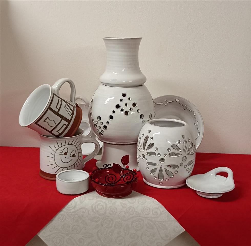 S tvořením jsem začínala původně v pronajaté dílně, v současné době pracuji a prodávám ve své dílně v Choýšanech, kam jsem se s rodinou přestěhovala. Setkat se se mnou můžete na keramických trzích, na jarmarcích, nebo nějakém farmářském trhu v okolí. Moje tvorba je převážně užitková keramika, točená, glazovaná a pálená. Glazuru používám bílou lesklou, modrou a v menší míře zelenou. Na všechny tyto glazury mám atest, jsou nezávadné a všechny výrobky vhodné pro styk s potravinami.