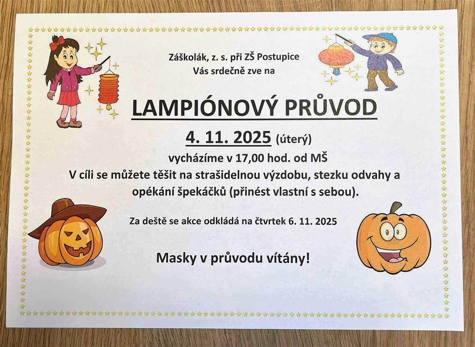 Přijďte na ampiónový průvod, v jehož cíli se můžete těšit na strašidelnou výzdobu, stezku odvahy a opékání špekáčků.
